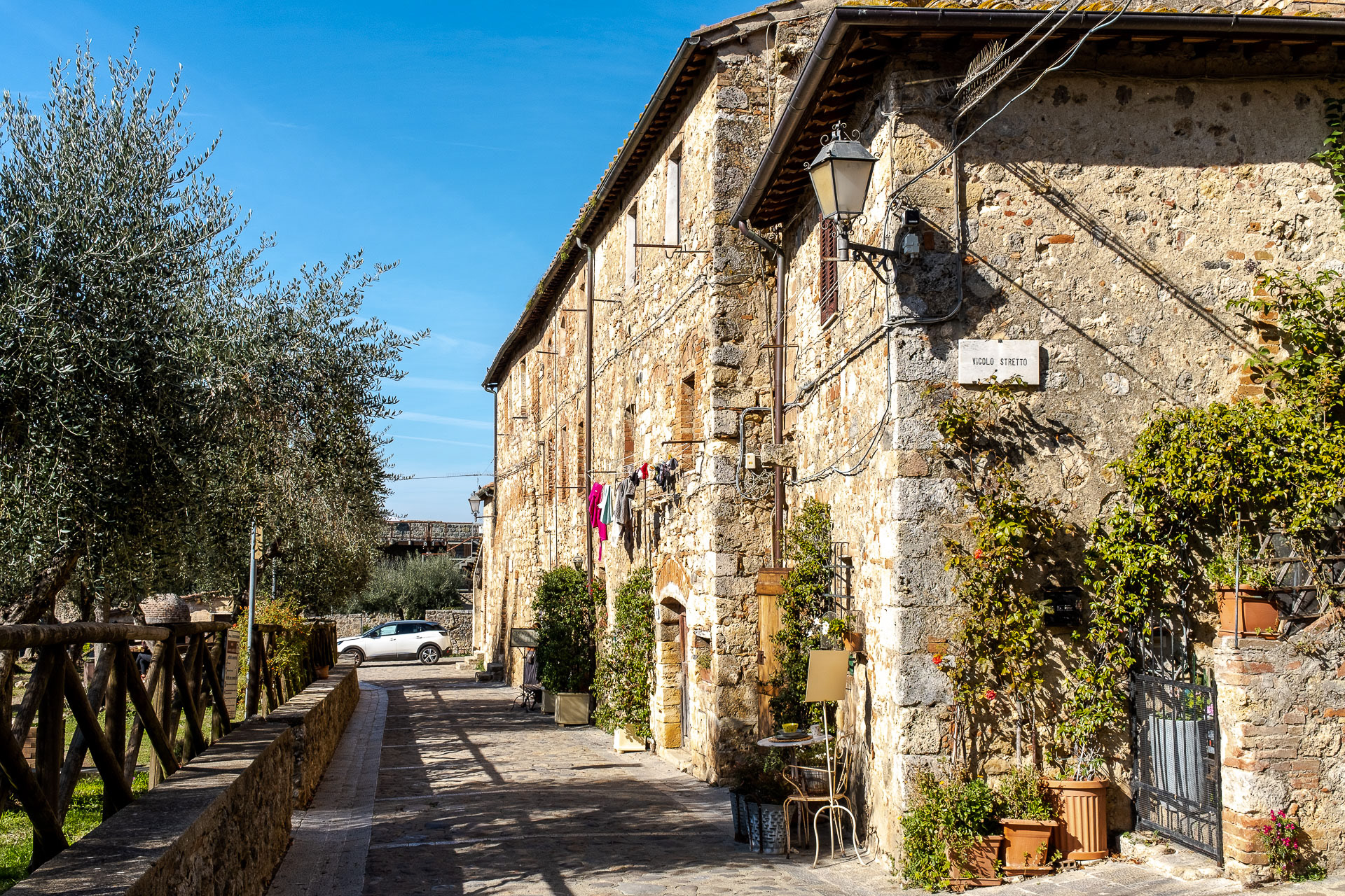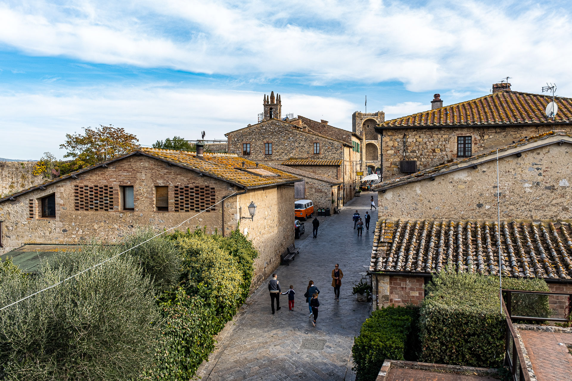 Le torri, la pietra, il foliage, il paesaggio attorno in questo borgo che profuma di Medioevo.
