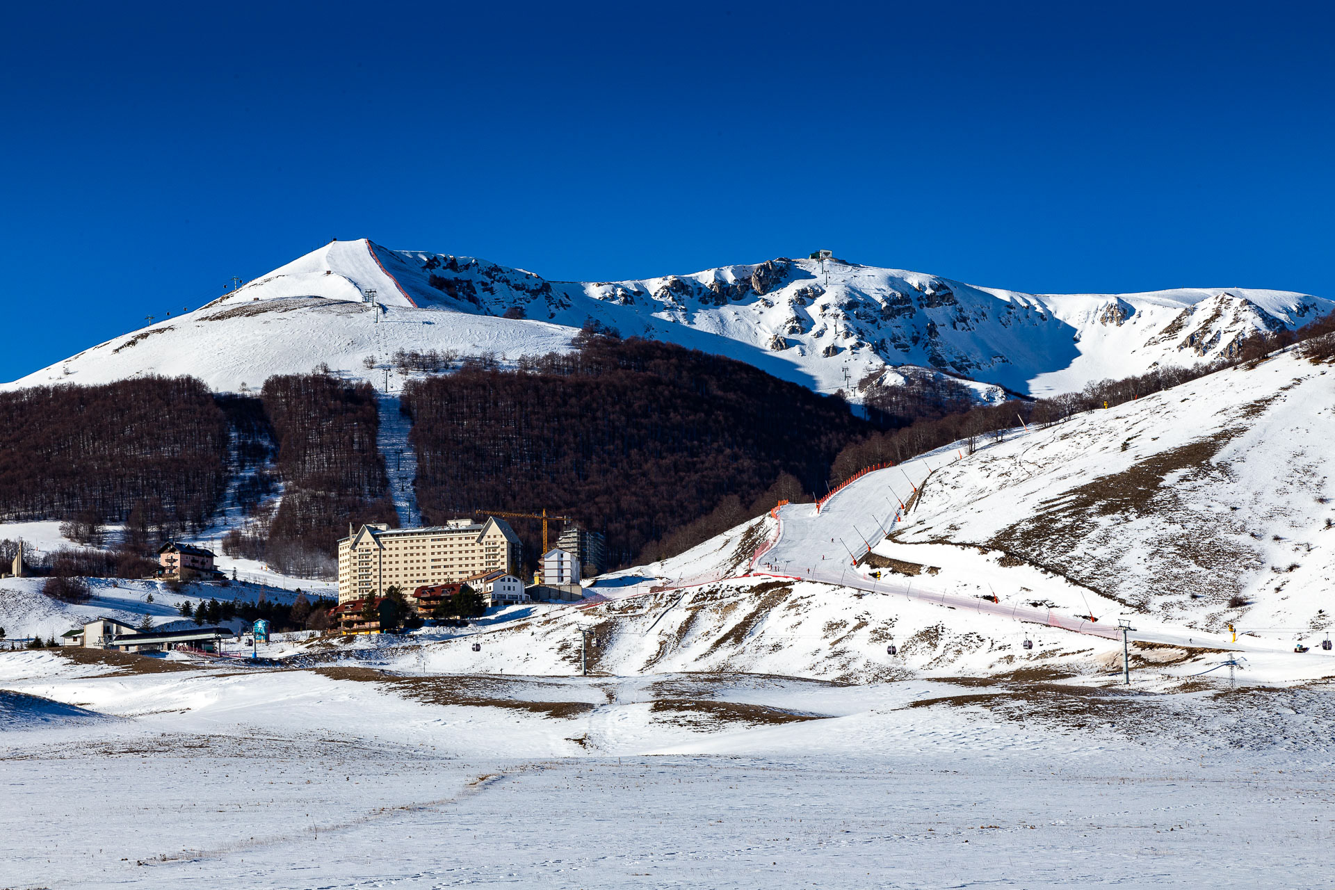 La più importante stazione sciistica del centro sud Italia in una limpida giornata d'inverno.